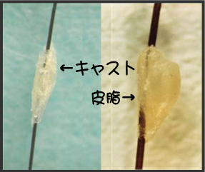 ※卵と間違えやすいものに、「毛根部の皮膚がリング状に抜けた『ヘアキャスト』」や『皮脂』等がありますが、これらには「指先でしごくと簡単に除去できる」という特徴があります。