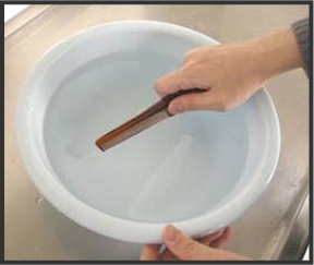 洗面器にお湯をため、クシにシラミや卵がついていたら洗いましょう。(歯ブラシがあると便利)