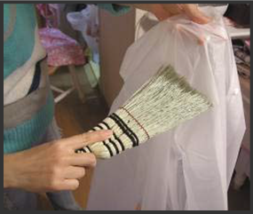 落ちた髪の毛とシラミはポリ袋に入れて密閉 して天日干し。